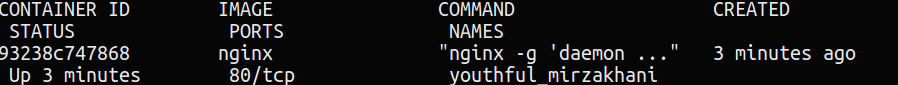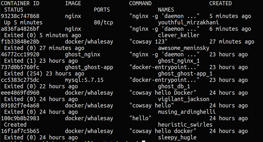 列出所有的正在运行的容器,加上-a会将运行过的容器都显示出来: