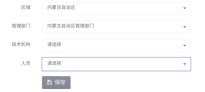 上面是我点击编辑后,根据id获取的人员有一个部门字段,内容为管理部门,这时应该默认选中管理部门。但是并没有选择上。所以让我们删除一下技术机构再看一下效果。